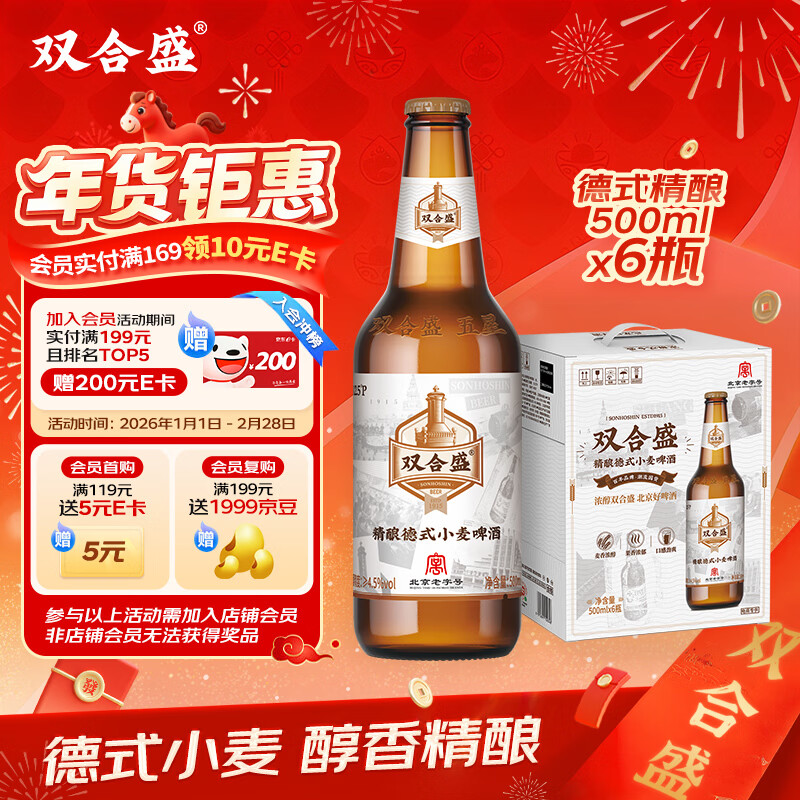 双合盛德式小麦精酿啤酒 百年老字号 全麦白啤 500ml*6瓶装 整箱装
