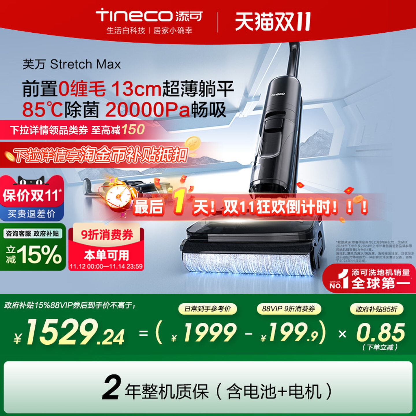 【全国补贴15%】添可洗地机吸拖洗地躺平0缠毛芙万Stretch Max