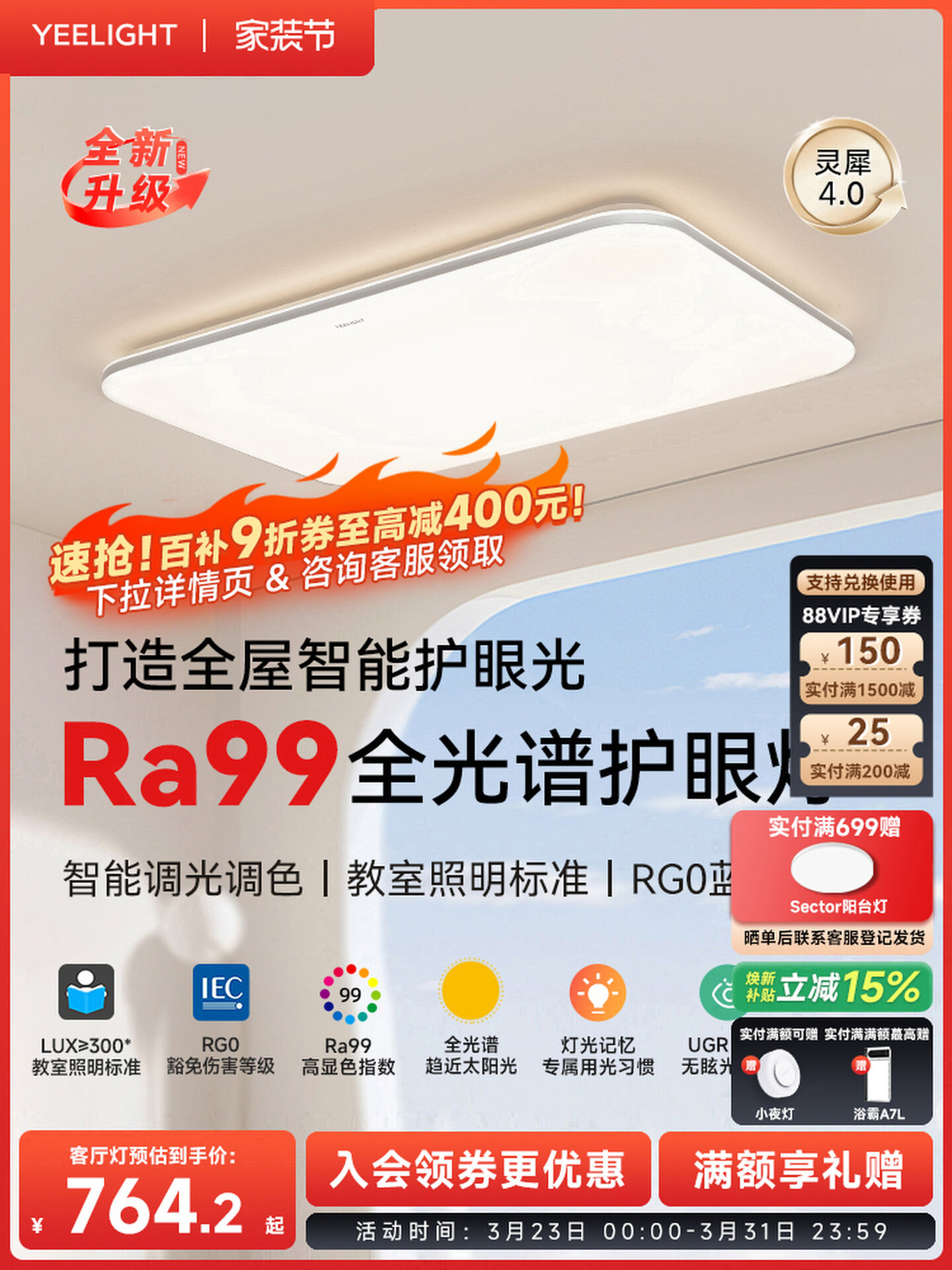 yeelight易来全光谱高亮吸顶灯全屋简约大气灯具智能客厅灯灵犀