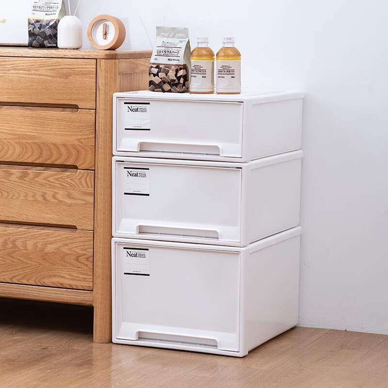 稻草熊 收纳箱抽屉式收纳盒塑料透明衣服家用储物箱整理箱衣柜收纳柜子 2439:深47宽30高20 【纯白】1个装