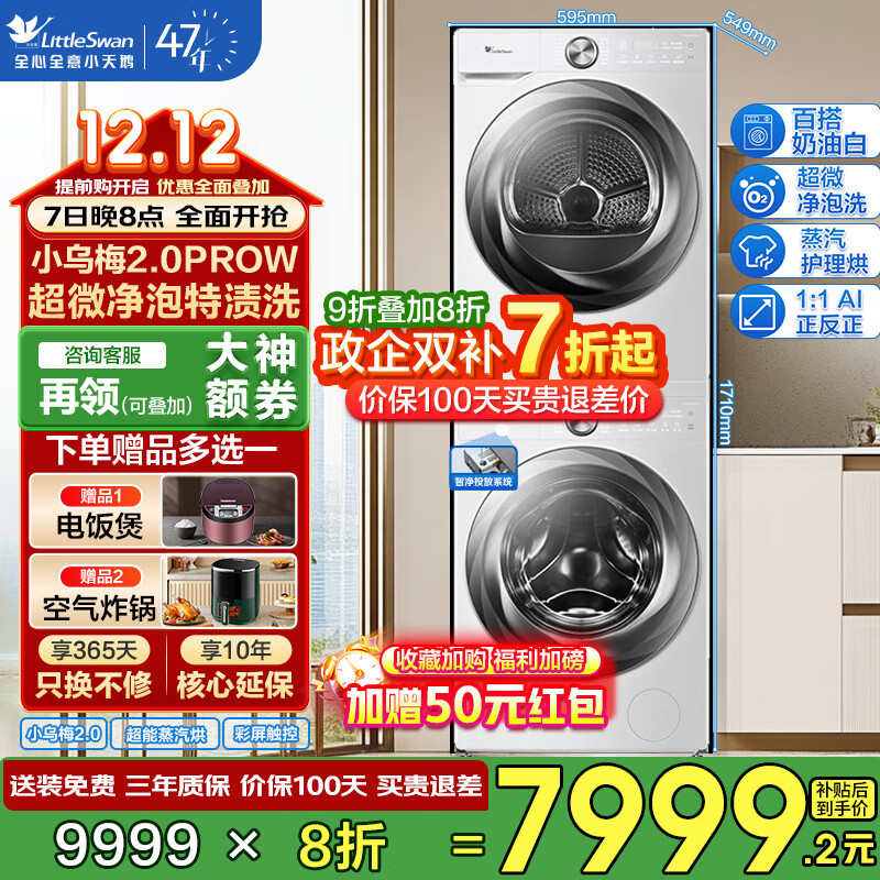 小天鹅(LittleSwan)3.0机皇洗烘套装滚筒洗衣机全自动10KG超微净泡洗特渍+热泵烘干机10KG节能双变频以旧换新国家补贴 小乌梅2.0 PRO系列 奶油白套装