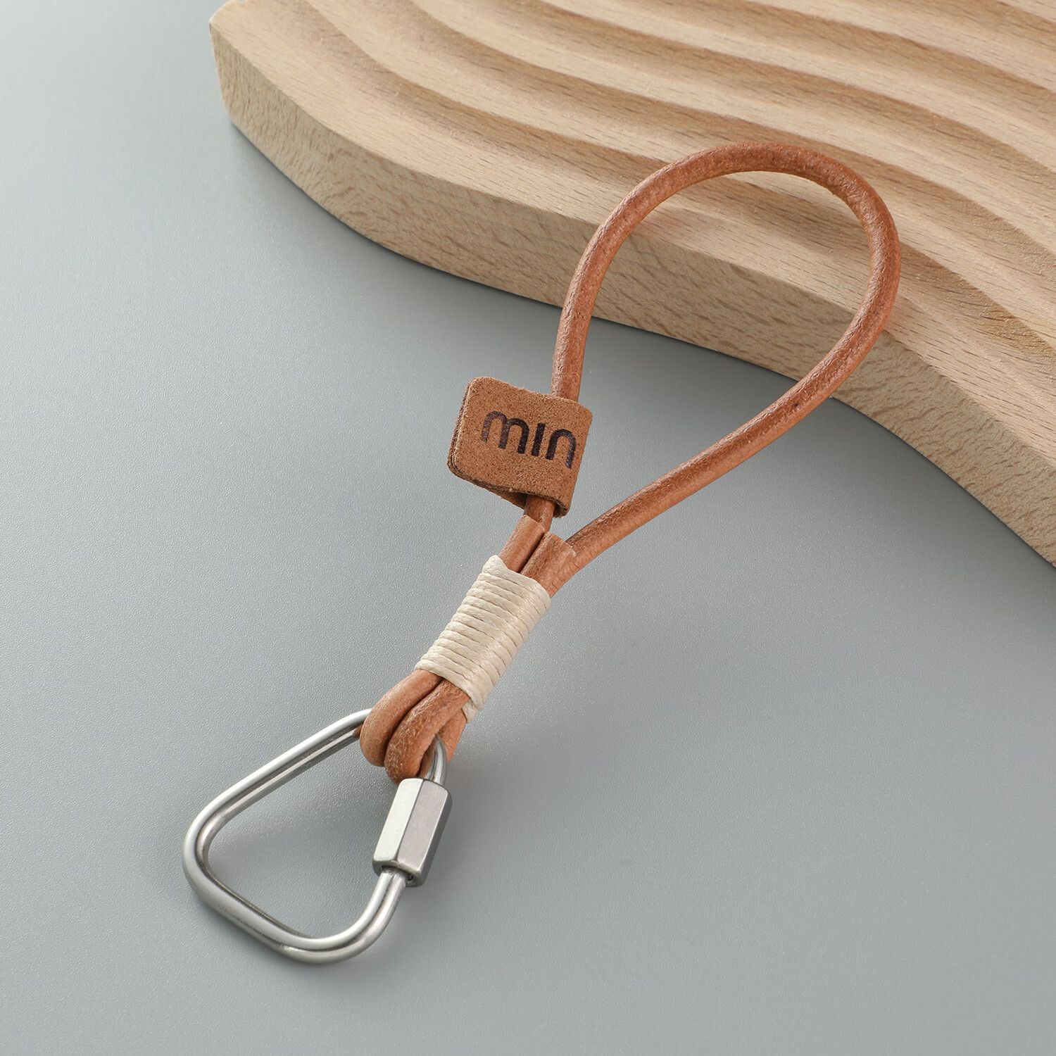 溥畔手工编织牛皮绳绑腊线短款手机绳U盘防丢挂件汽车钥匙扣 本色绳扣+米色线