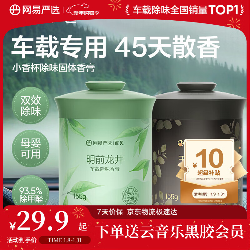 网易严选车载香薰汽车香薰香氛固体香膏2瓶 车内除异味除甲醛摆件礼物