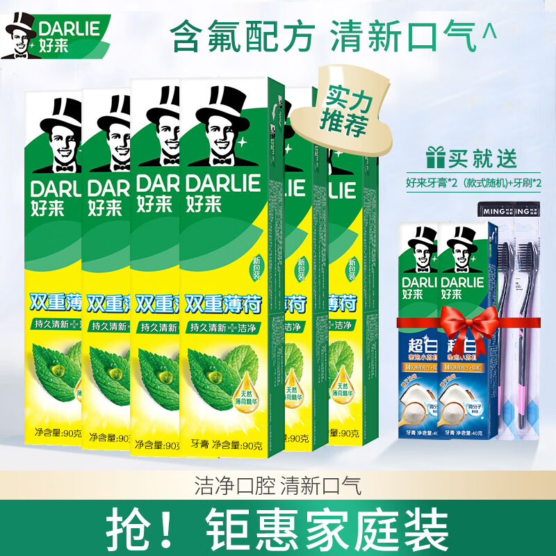 ºÃÀ´£¨DARLIE£©ºÚÈËÑÀ¸à ³¬°×ÖñÌ¿ÐÇÒ«°×ÇåÐÂ¿ÚÆø ÁÁ°×·ÀÖû¹Ì³Ý »¤ö¸ÑÀ×Õ»ÆÑÀ ±¡ºÉ90g*6