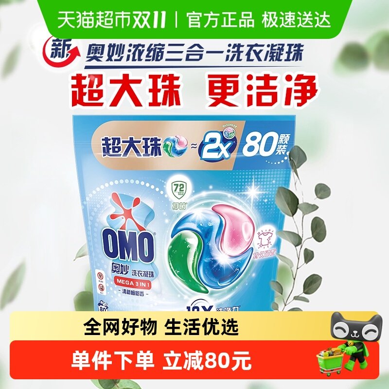 奥妙三合一清新桉树香洗衣凝珠1760G