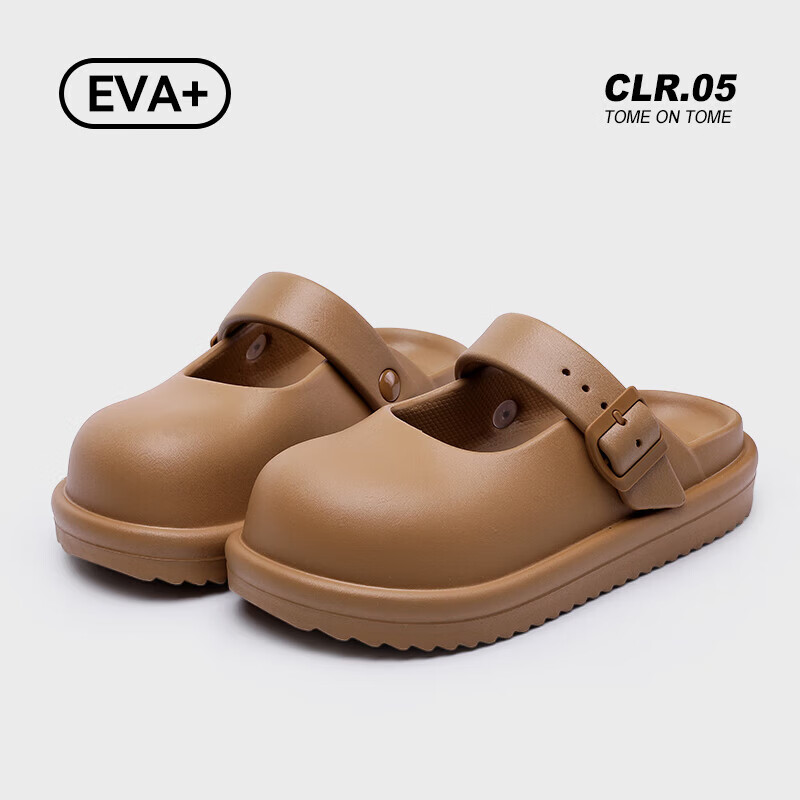 三利包头拖鞋玛丽珍夏天外穿百搭时尚复古厚底防滑凉拖 咖啡色 37-38