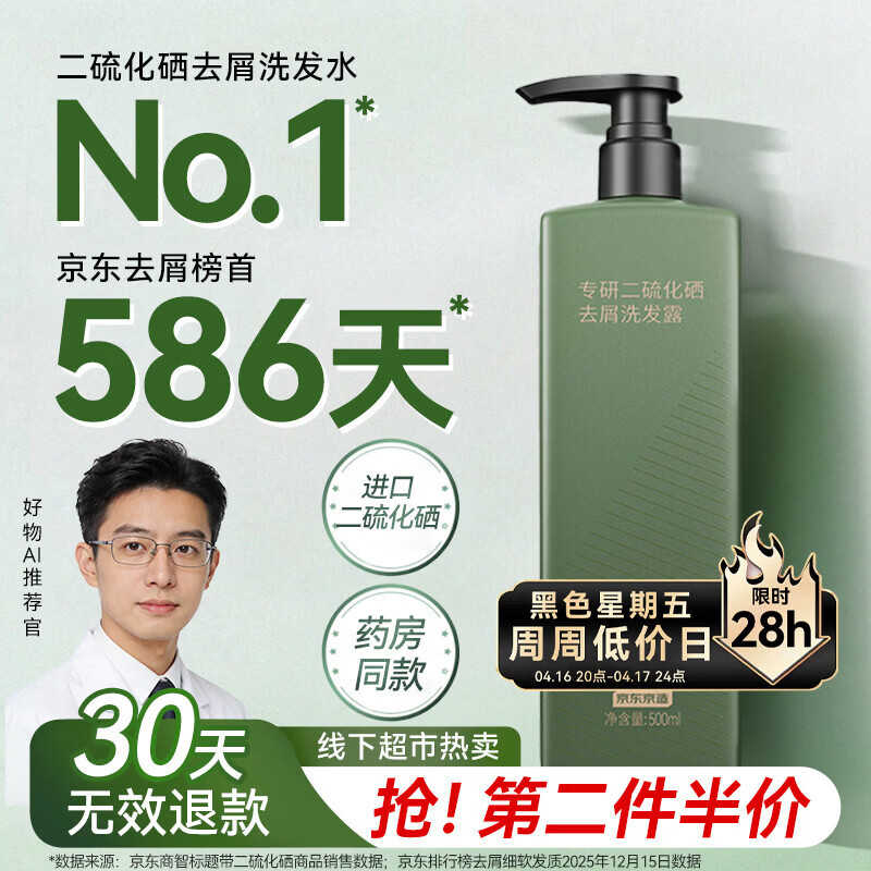 京东京造【进口】二硫化硒洗发水去屑止痒控油持久蓬松男女士金榜第1洗头