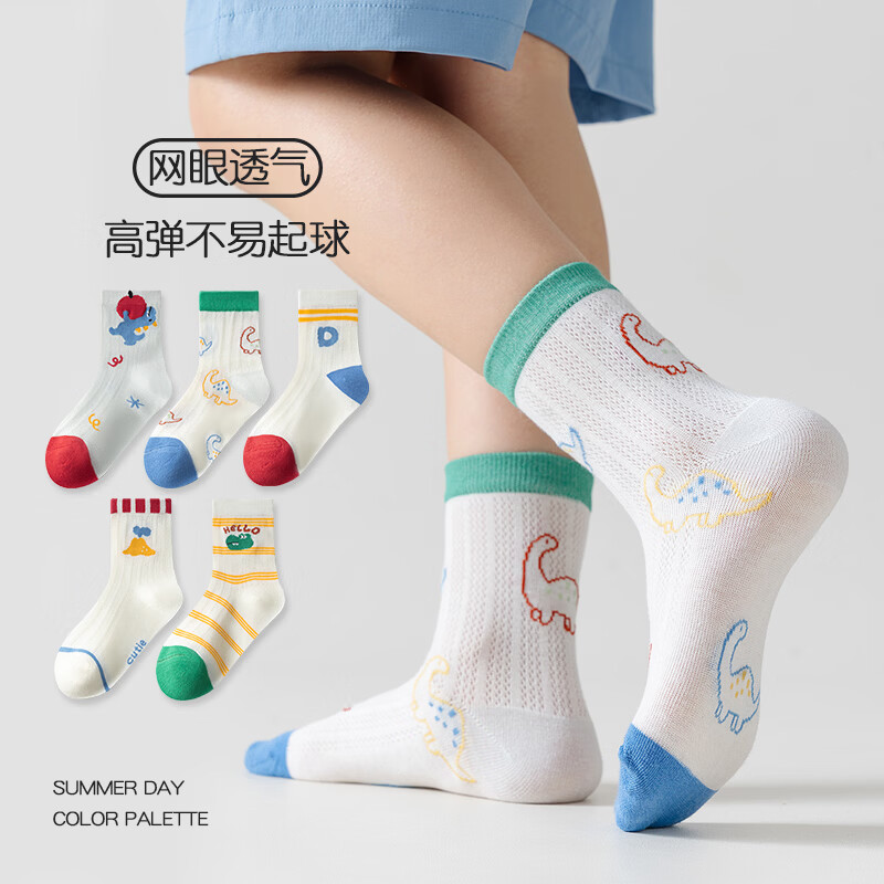 BANILACOO75%棉A类儿童春夏薄款袜男童女童春夏袜子婴儿新生儿宝宝夏季卡通 26013-5双 5-8岁 L码(5-8岁适合鞋码27-31码)