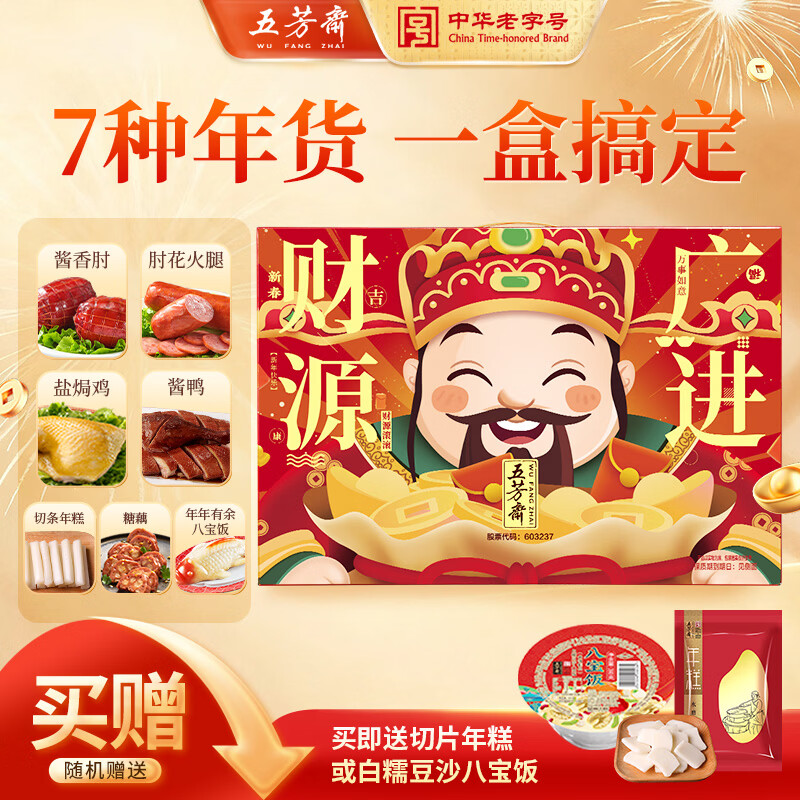 五芳斋熟食腊味年货礼盒装卤味酱鸭火腿八宝饭盐焗鸡糖藕杏鲍菇送人礼包 1.98千克五芳福泽年货礼盒
