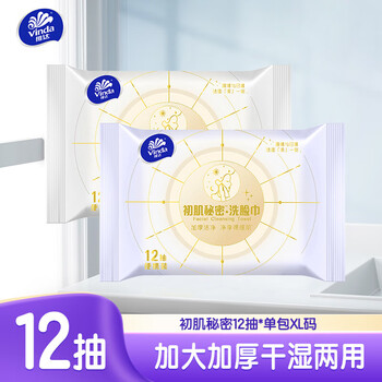 维达(Vinda)绵柔巾 12抽*单包XL码 一次性洗脸巾 加大加厚干湿两用 尝鲜装