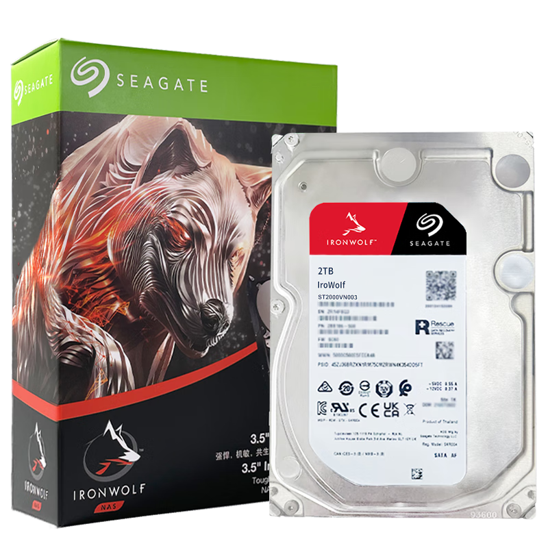 希捷(SEAGATE)NAS硬盘 2TB 256MB 机械硬盘 CMR垂直 静音低耗 数据恢复服务 3.5英寸 希捷酷狼 ST2000VN003