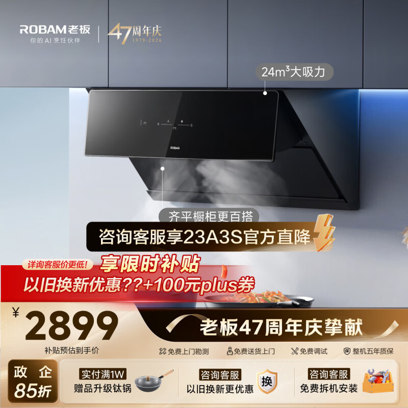 老板【三面拢烟侧吸】24风量油烟机抽烟机家用厨房好物以旧换新上门安装一级能效28D3S可配灶政府补贴