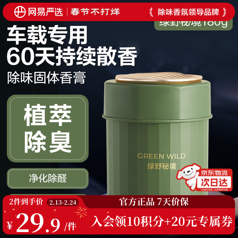 网易严选车载固体香膏香薰汽车香氛 车内除异味空气清新送礼绿野秘境180g