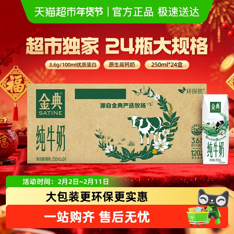 【超市独家】伊利金典纯牛奶整箱优质蛋白高钙学生家庭早餐囤货装