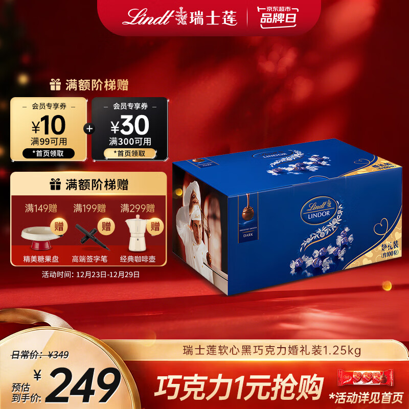 瑞士莲软心黑巧克力 婚礼装1.25kg 糖果 散装喜糖 伴手礼 圣诞礼物