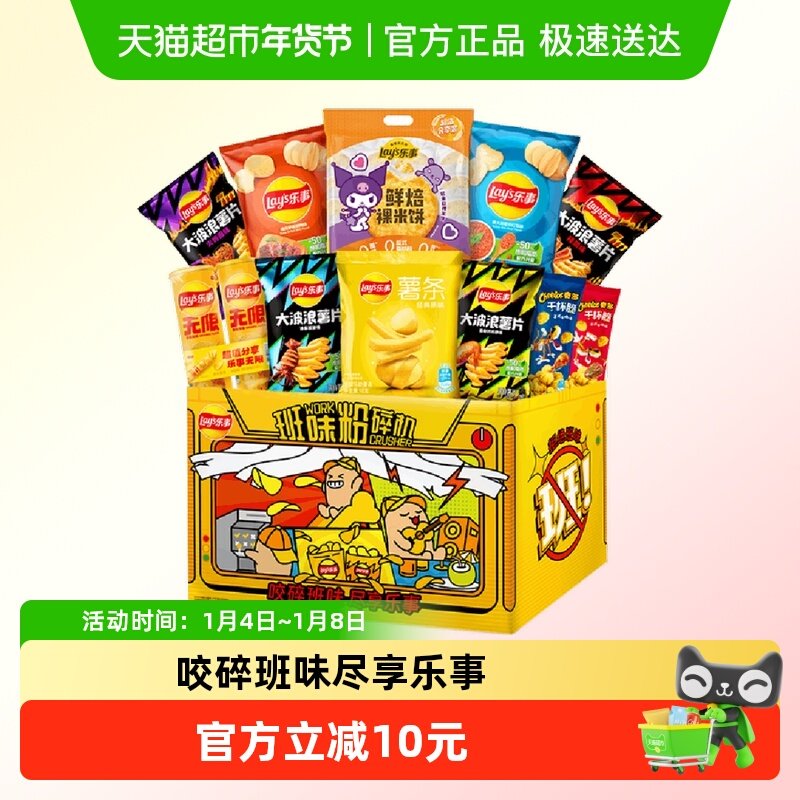 Lay's/乐事班味粉碎机薯片米饼零食大礼盒668gx1盒露营新年送礼