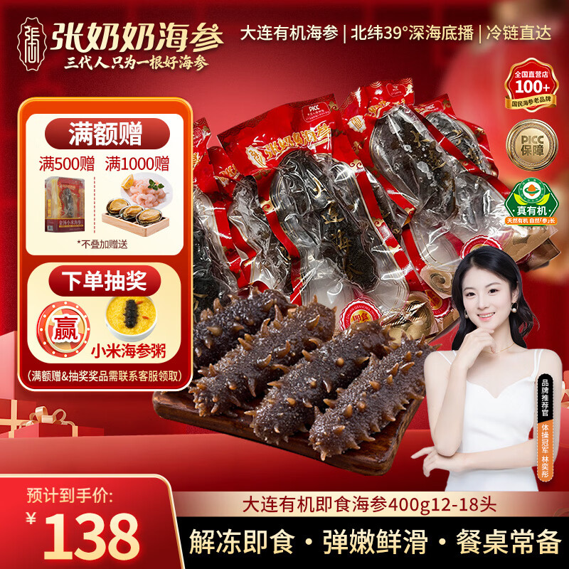 张奶奶大连有机即食海参400g12-18头袋装囤货高品质海鲜无污染 家庭年货