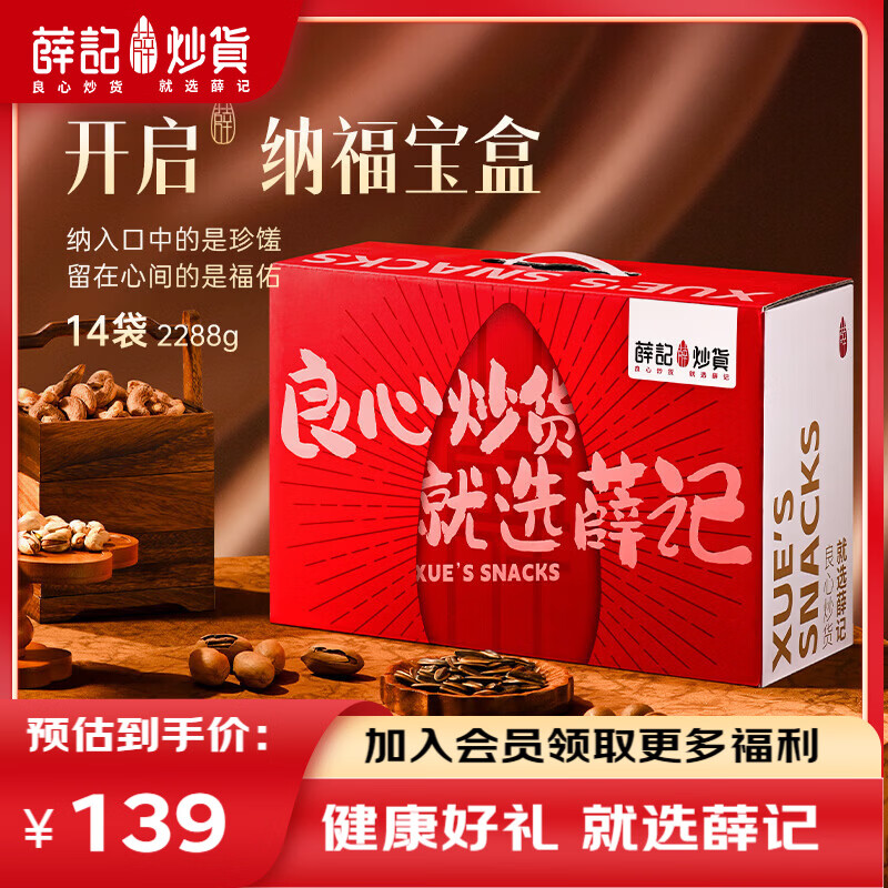 薛记炒货 坚果礼盒果干节日礼盒过节日送礼零食大礼包零食送长辈送礼新年 纳福礼2288g/14袋【推荐】