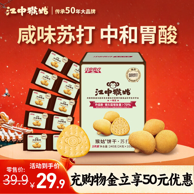 江中猴姑原味养胃苏打猴头菇饼干中老年孕妇胃酸健康零食早餐黑五240g