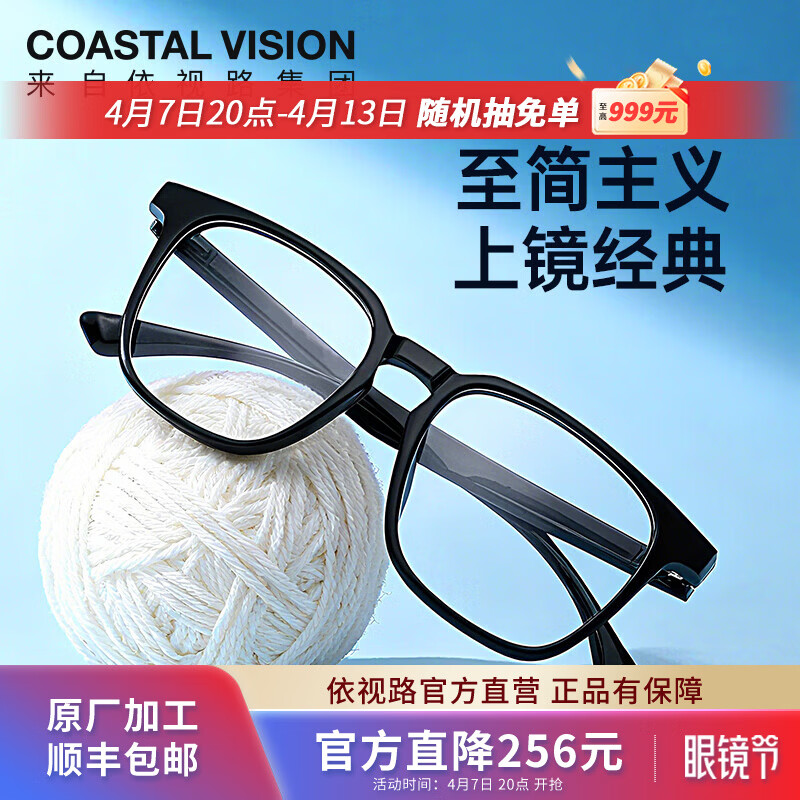 依视路(ESSILOR) 钻晶系列高清耐磨防蓝光近视薄镜片配度数眼镜架男女镜框 TR90-全框-1156BK-黑色 镜框+依视路膜岩高清1.60现片