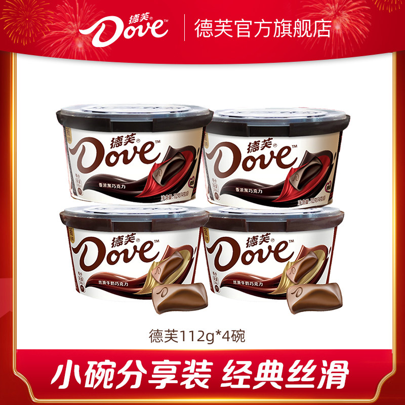 德芙巧克力旗舰店小碗装112g碗零食小吃丝滑牛奶黑巧克力送女友
