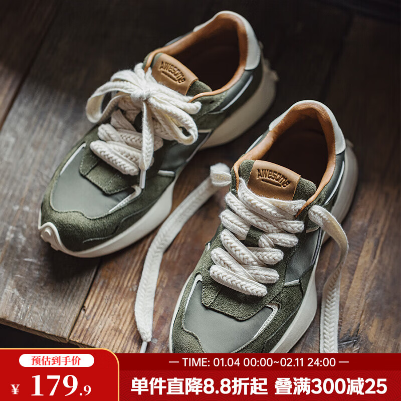 马登山系经典复古拼接老爹鞋新款运动慢跑鞋日常舒适百搭休闲鞋男秋季 苔藓绿 41 (255mm)