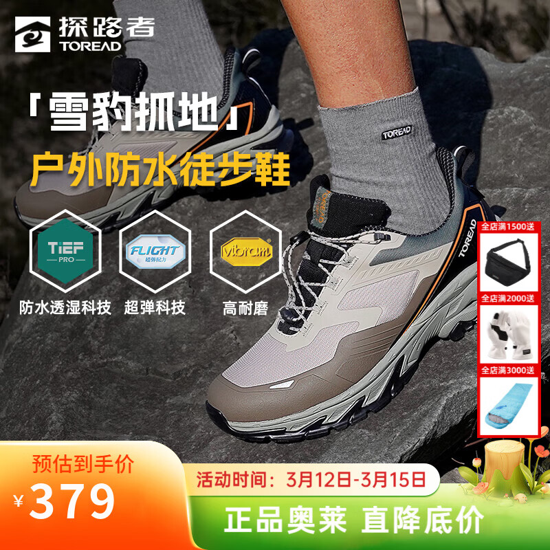 探路者(TOREAD)男户外防滑防水雪豹抓地徒步鞋轻量高弹涉水运动登山鞋大牌奥莱 浅卡其黑色 39