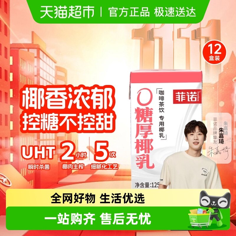 菲诺0糖厚椰乳125g*12盒椰汁椰奶椰子汁咖啡奶茶伴侣植物蛋白饮料