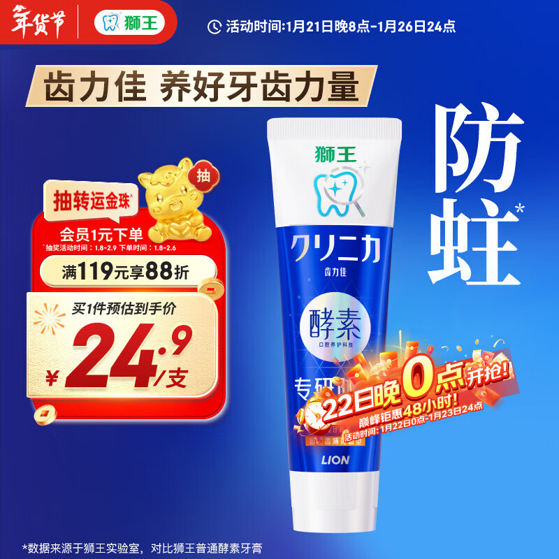 狮王(Lion)齿力佳酵素专研防蛀高氟牙膏留兰香薄荷130g抑菌新老包装随机发货