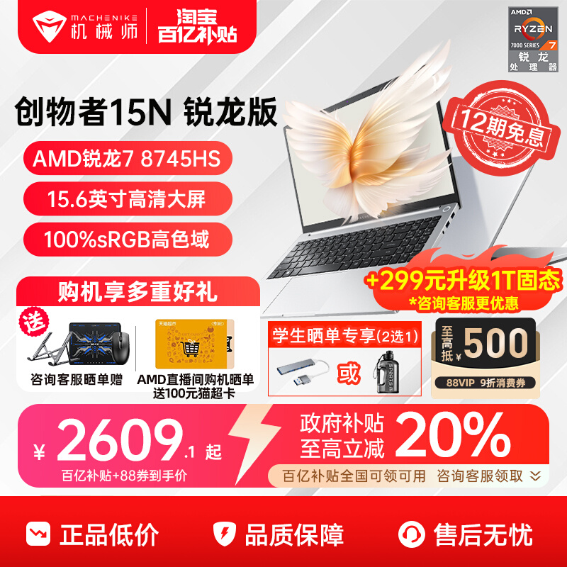 【百亿+政府补贴】机械师创物者15N 2025新款锐龙7-8745HS 15.6英寸高性能轻薄本笔记本电脑学生办公商务手提
