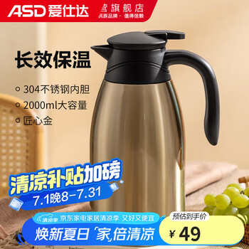 爱仕达保温壶大容量家用暖水壶保温瓶304不锈钢热水壶2L