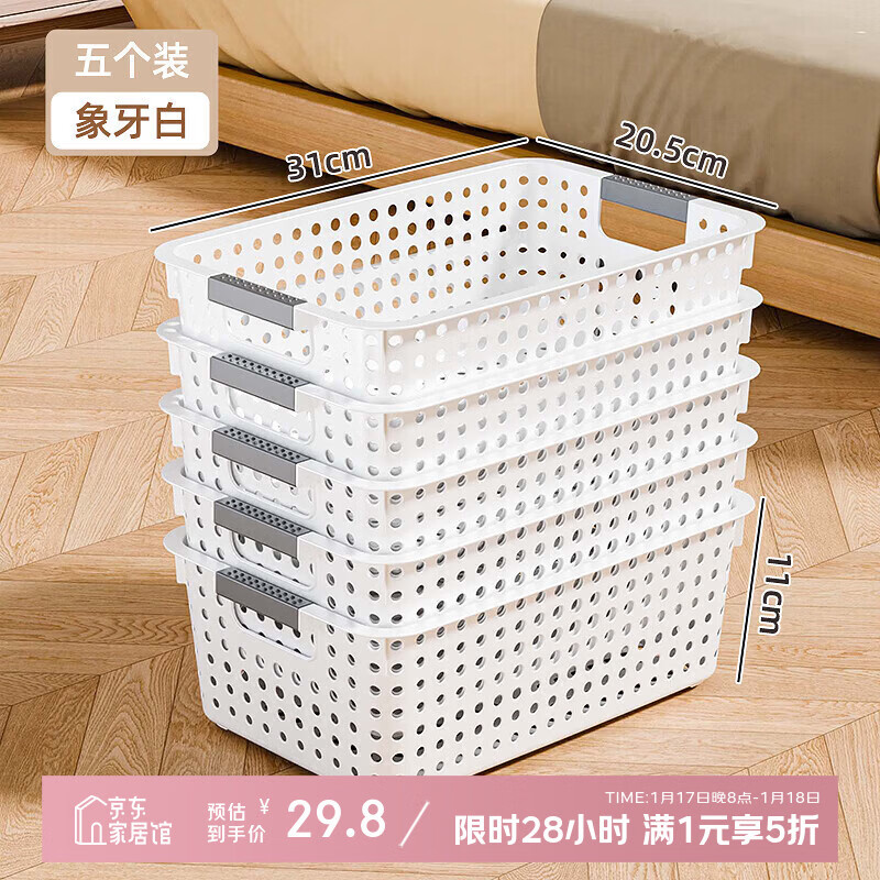 稻草熊(DOCOXO)杂物收纳篮桌面化妆品零食玩具文件整理收纳篮筐床边储物整理筐 象牙白大号【5个装】