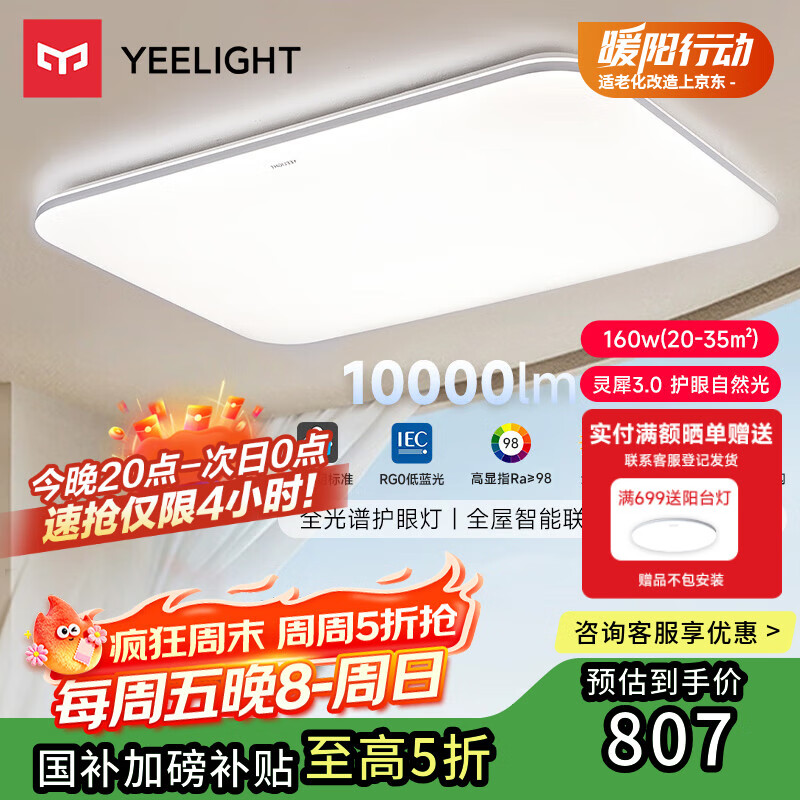 Yeelight易来led全光谱吸顶灯客厅卧室已接入米家灯具灵犀3.0【包安装】