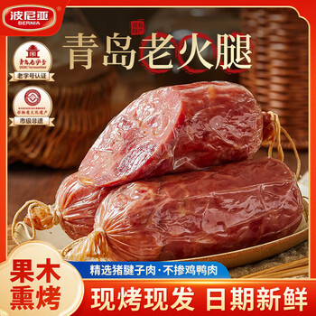波尼亚(BERNIA) 青岛老火腿 纯腱子肉火腿 熏烤老式火腿青岛特产下酒菜 开袋即食 385g*3腱子肉青岛老火腿 果木熏烤工艺