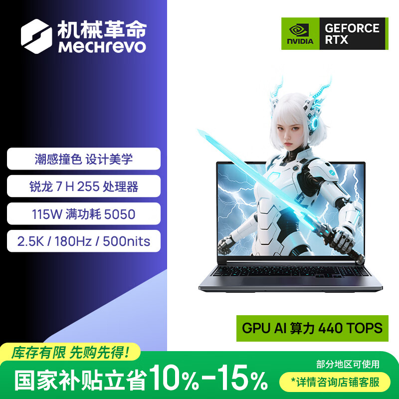 机械革命蛟龙16Pro 潮玩版 16英寸游戏电竞笔记本电脑(R7 H255 16G 512G RTX5050 180Hz灰)