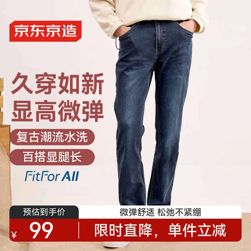 京东京造牛仔裤男士休闲裤四季百搭裤子男复古锥形 深蓝色 34