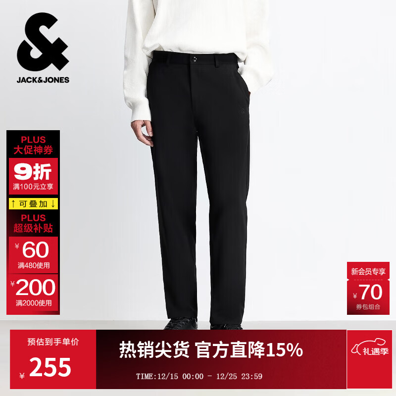 杰克·琼斯(JACK&JONES)【衣启赢运】25年秋冬季男装裤子男士商务休闲裤磨毛款弹力九分裤 E43纯黑色 略宽松,卡码拍小 31 175