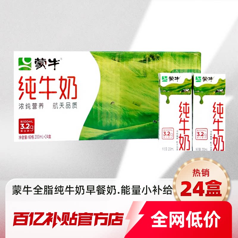 蒙牛全脂纯牛奶200mL*24盒官方正品早餐奶全脂灭菌乳百亿补贴