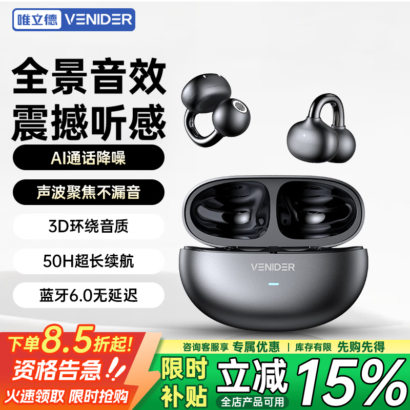 唯立德【2026最新款丨新品榜TOP1】蓝牙耳机耳夹式骨传导概念无线开放式运动跑步超长续航不入耳 【京东独家Pro版】星际黑丨久戴不伤耳