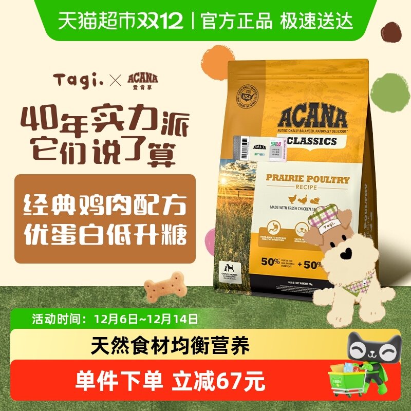 Acana爱肯拿 狗粮成犬幼犬通用 经典鸡肉犬粮2kg 最近效期26/7/19