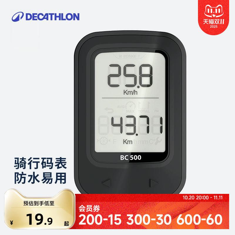 迪卡侬有线无线码表山地车公路自行车里程温度背光多功能OVB2
