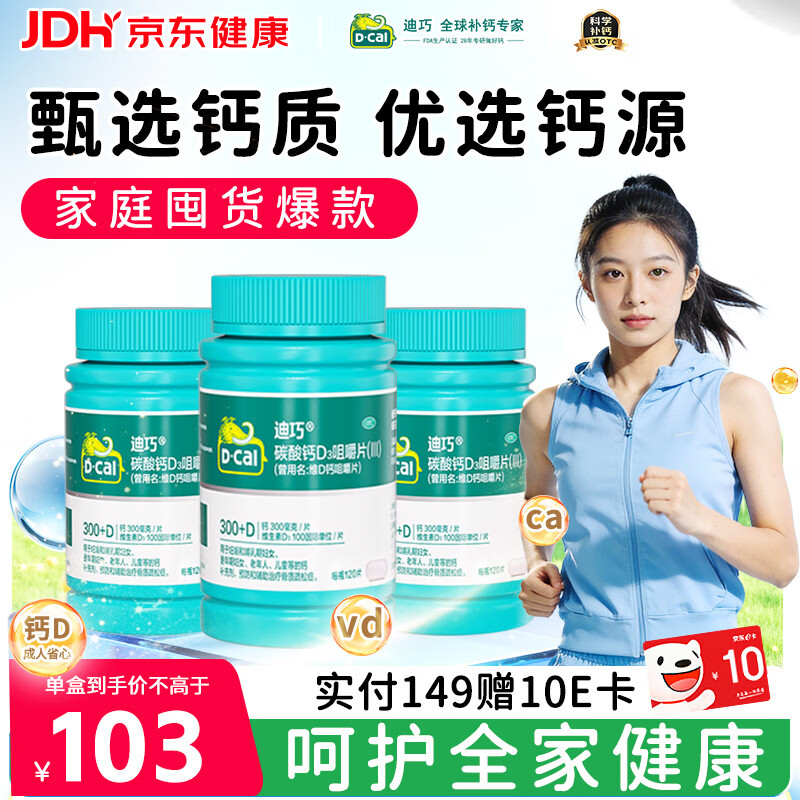 迪巧成人钙片120粒*3盒碳酸钙d3咀嚼片(Ⅲ)孕妇钙片中老年男女补钙预防骨质疏松全家适用