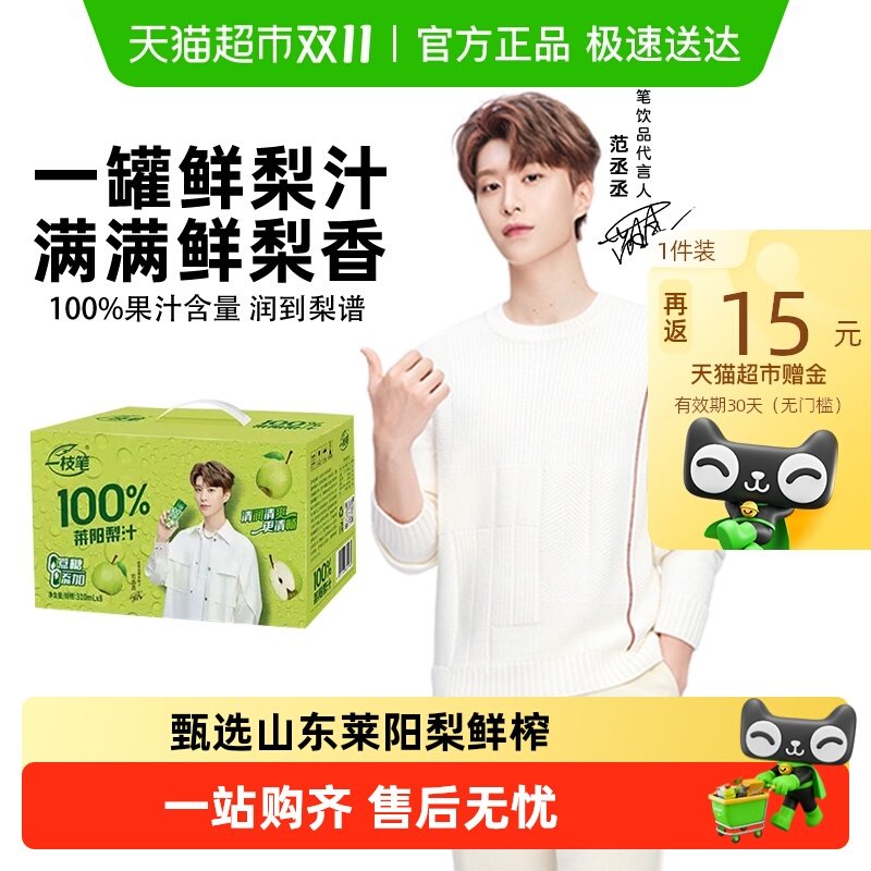 一枝笔范丞丞同款100%莱阳梨汁310ml*8罐家庭装纯梨汁果汁饮品