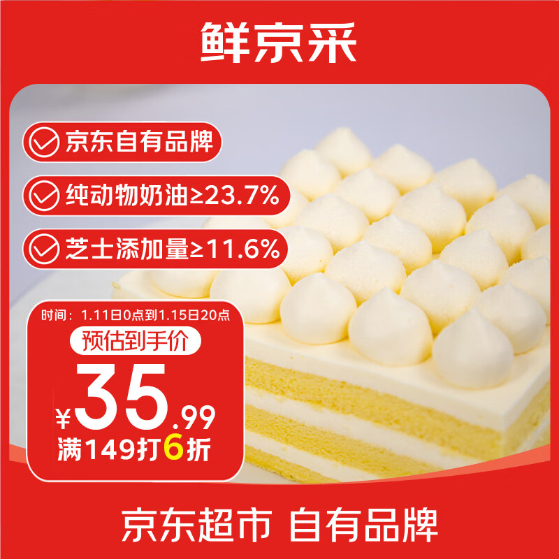 鲜京采纯粹美味鲜奶油芝士蛋糕400g/6寸 动物奶油冰淇淋零食中秋