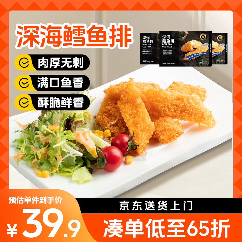 美加佳深海鳕鱼排310g(10枚)*3盒 整块鳕鱼 油炸小吃方便菜