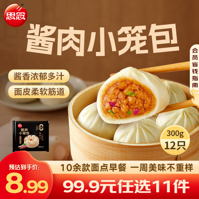思念早餐任选 半成品早餐 面点早餐组合 包子手抓饼烧麦 速食方便 酱肉小笼包300g