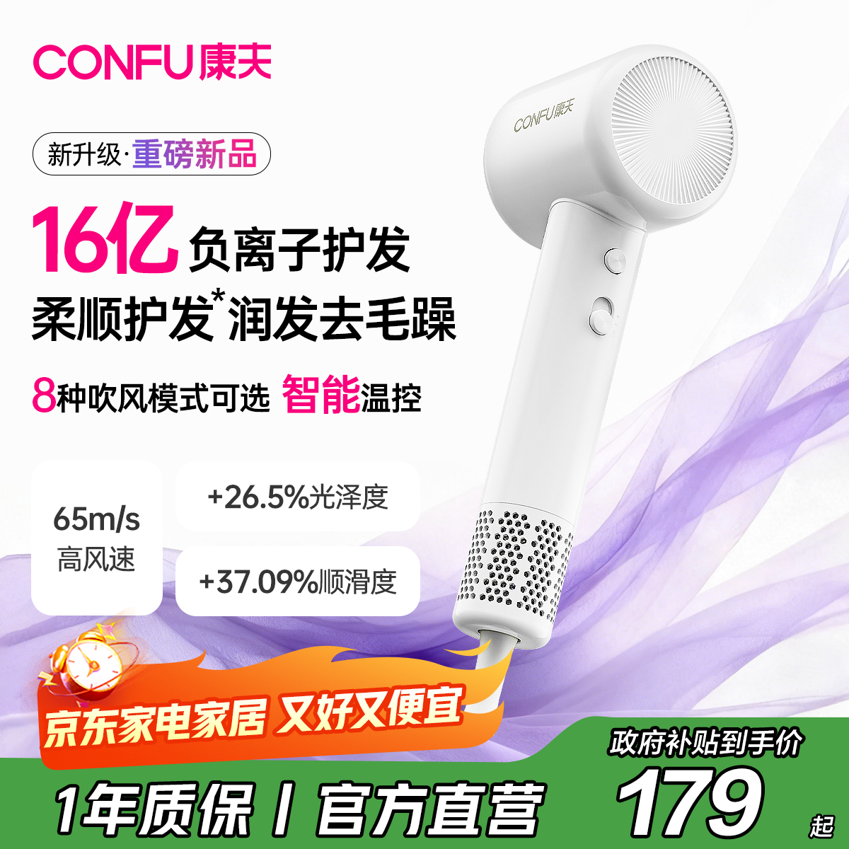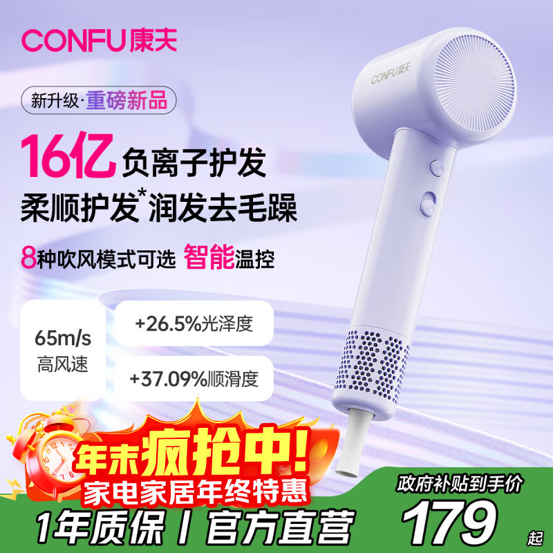 康夫(CONFU)【重磅新品】高速电吹风机16亿负离子护发送女友生日礼物家用大功率大风力吹风筒F20紫