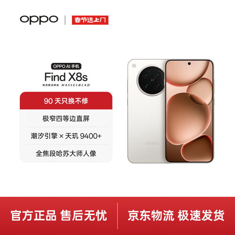 OPPO Find X8s 12GB+512GB 月光白 极窄四等边 天玑9400+ 哈苏人像 超长续航电池 5G旗舰手机 国家补贴
