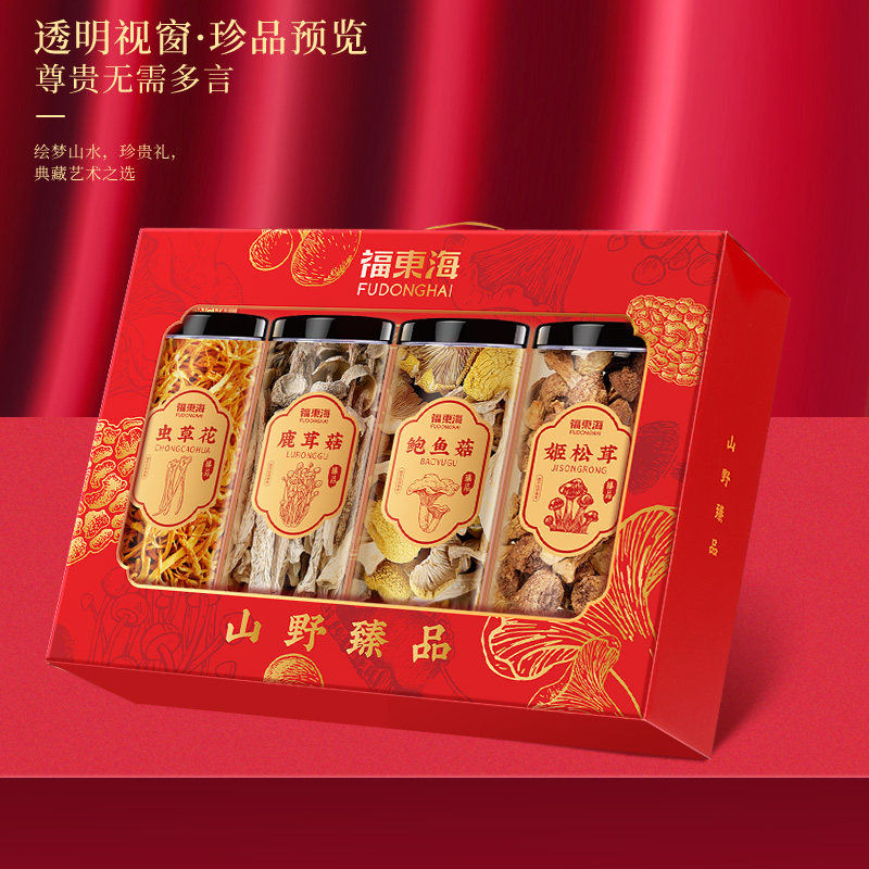 【年货节】福东海菌菇四拼礼盒鲍鱼菇虫草花养生汤材料送长辈