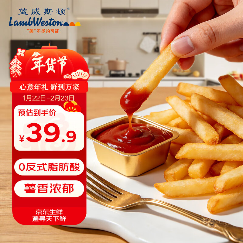 蓝威斯顿 1/4原味冷冻细薯条2kg 线下同款 空气炸锅食材油炸食品预制菜